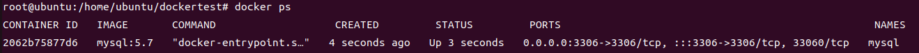 docker run -d --name mysql -e MYSQL_DATABASE=testdb -e MYSQL_ROOT_PASSWORD=12345 -v db:/var/lib/mysql:ro -p 3306:3306 mysql:5.7