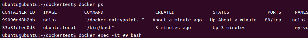 docker run -d --name my-volume -it -v /opt/html:/usr/share/nginx/html ubuntu:focal