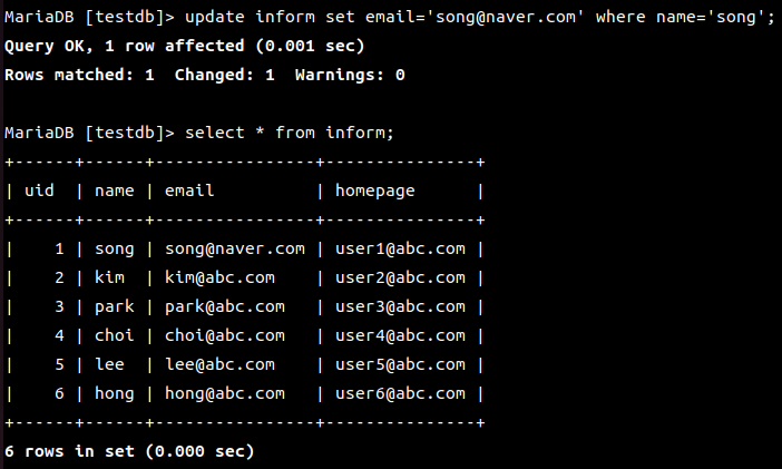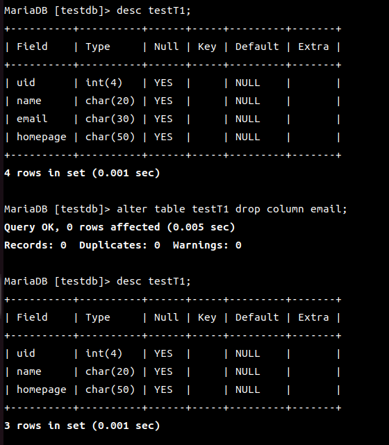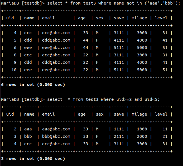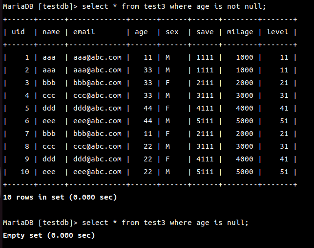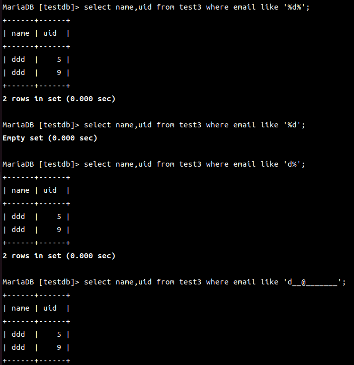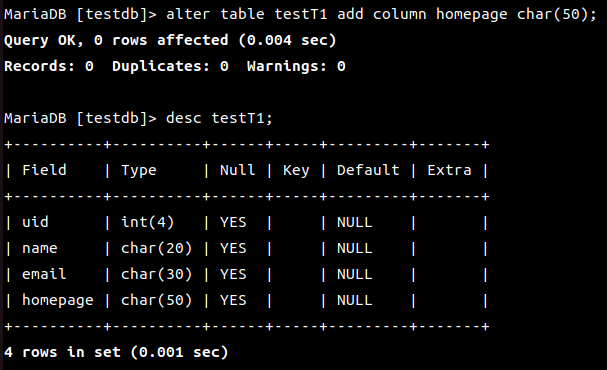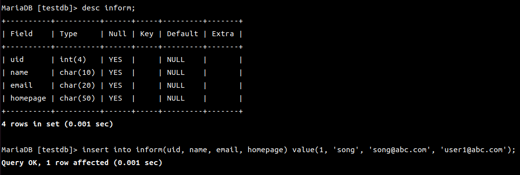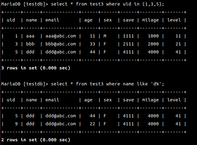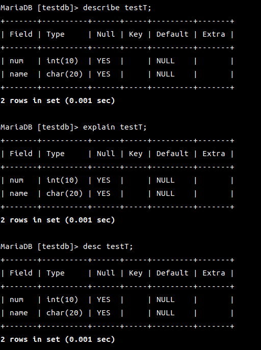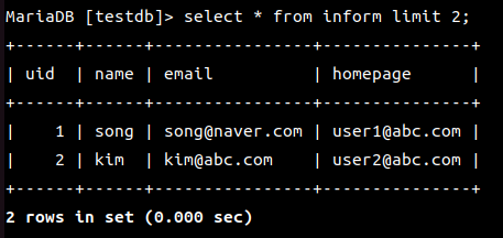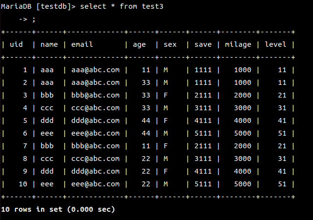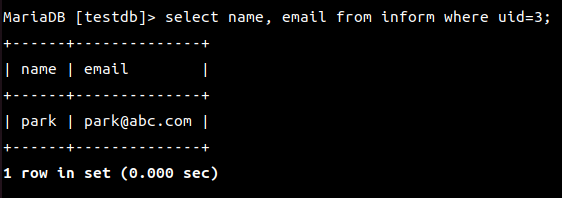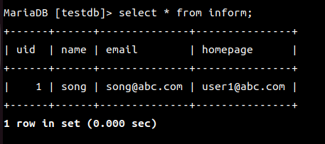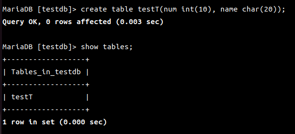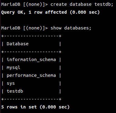 MariaDB [(none)]> use testdb;