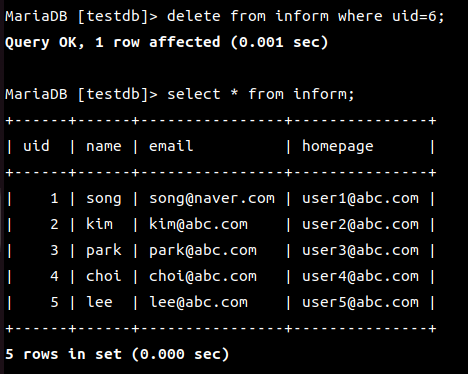 | uid가 2이상 5미만인 레코드 |