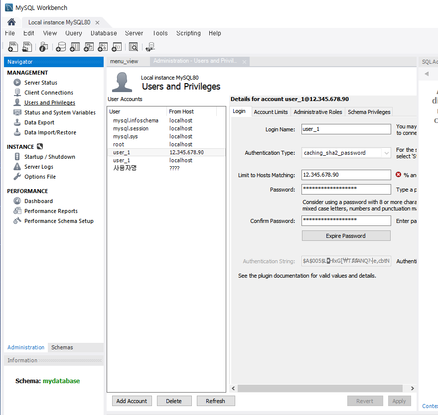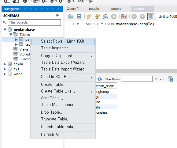 - 서버 관리 : MySQL 서버에 접속하여 데이터베이스와 사용자 계정을 관리할 수 있다. 데이터베이스의 백업과 복원도 가능하다.