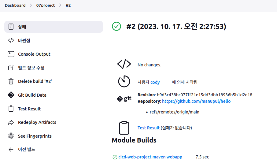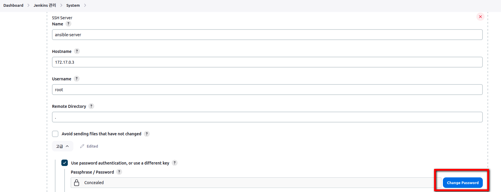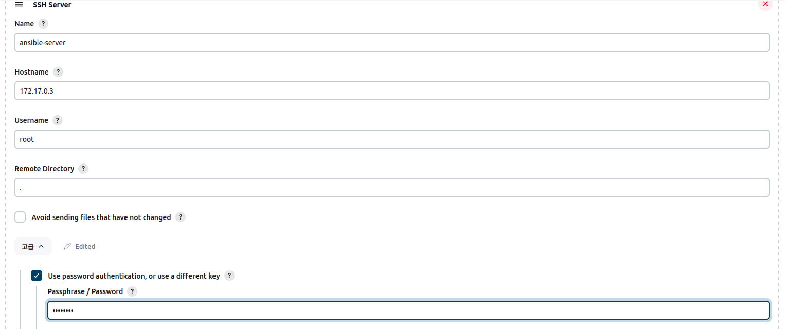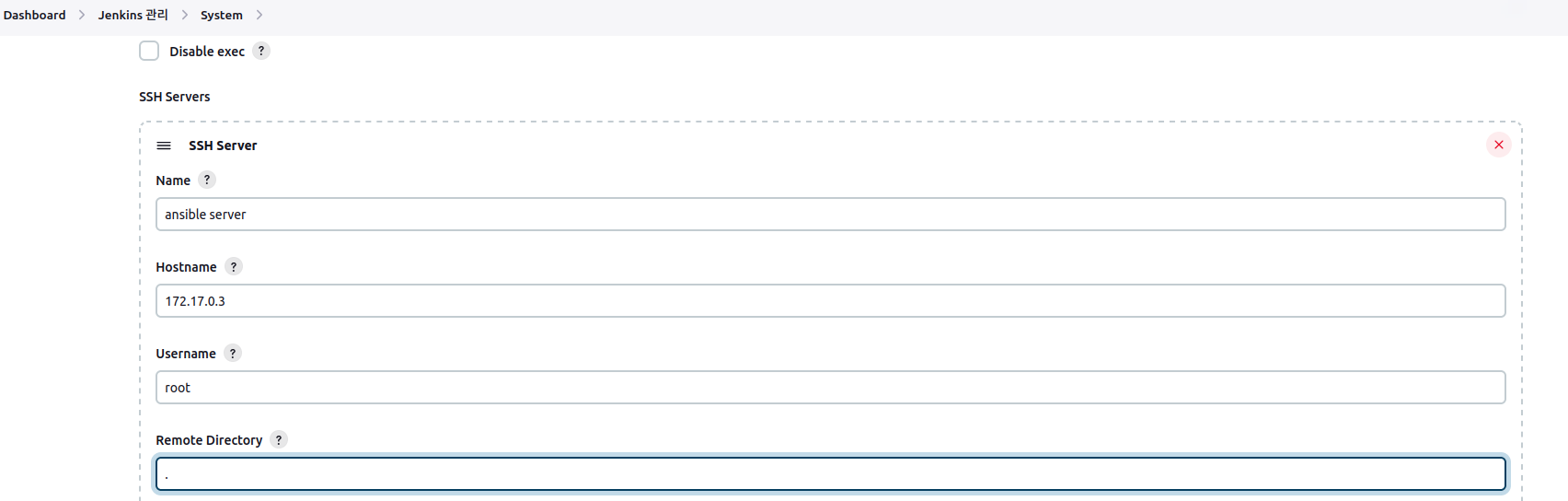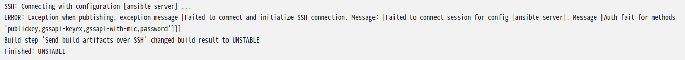 ansible-server에 SSH 접속이 실패해서 빌드가 실패했음을 알 수 있다.